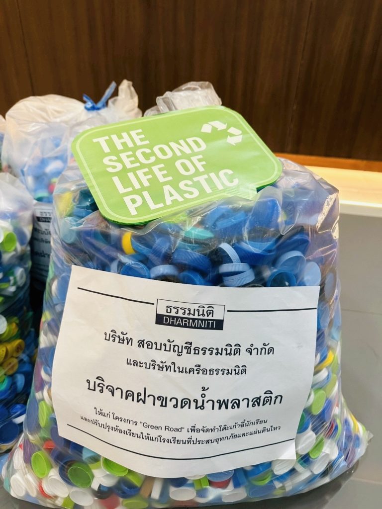 บริษัท สอบบัญชีธรรมนิติ จำกัด ร่วมกับบริษัทในเครือธรรมนิติ จัดกิจกรรม CSR บริจาคฝาขวดน้ำพลาสติก เพื่อส่งต่อสิ่งดี ๆ สู่สังคม โดยเปิดโอกาสให้พนักงานทุกคนได้ร่วมบริจาคฝาขวดน้ำพลาสติกให้กับโครงการ “Green Road”
